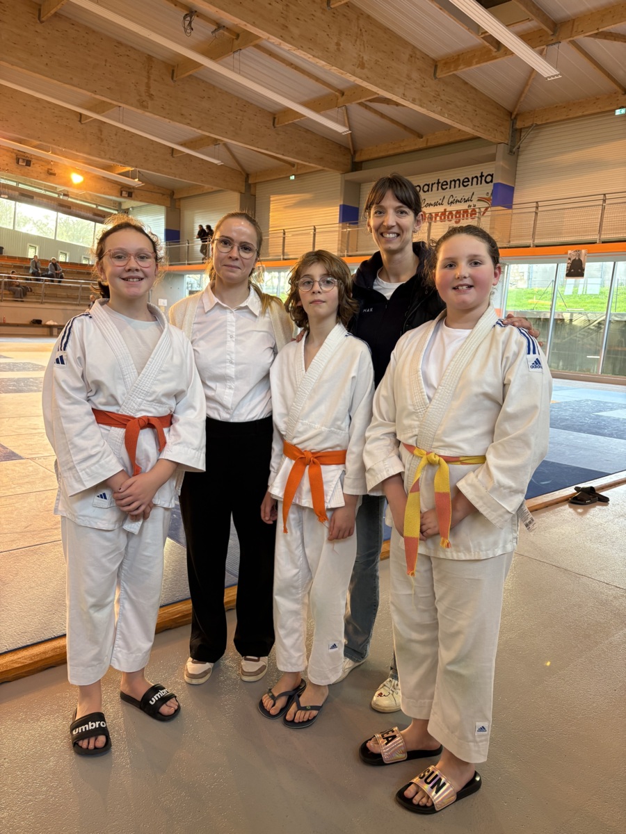 Samedi, à Limoges, aux ceintures de couleurs cadets, Corentin marque ses 10 premiers points pour la ceinture noire. Encourageant, il faut continuer ! Dimanche matin à Coulounieix, au championnat de Dordogne minimes, Evan en -55kgs , termine 2ème , après 3 belles victoires et une seule défaite en finale ; il faut encore progresser et prendre sa revanche aux interdépartementaux en janvier. L'après-midi, notre trio de benjamins continue sa progression : 2 défaites pour Sara et Oscar, avec de belles intentions , et une 2ème place pour Ilana ( 2 victoires, 2 défaites) en gros progrès. De plus, Laetitia a validé son UV4 2ème dan, en arbitrant toute la journée , maintenant les points ... Félicitations à tous !
